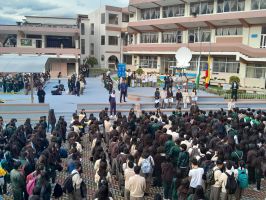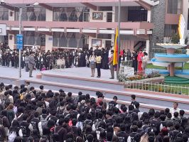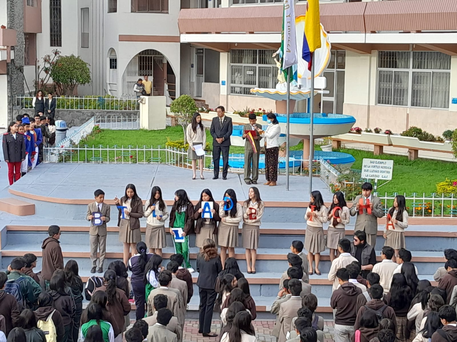 Con la presencia de las Autoridades, Docentes, Padres de Familia, Estudiantes, Asociación de Padres de Familia, Patoral Familiar, estudiantes.