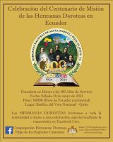 La Congregación de las Hnas. Maestras de Santa Dorotea, Hijas de los Sagrados Corazones, un día como hoy 15 de mayo, celebran los 100 años de su llegada a nuestra tierra ecuatoriana.