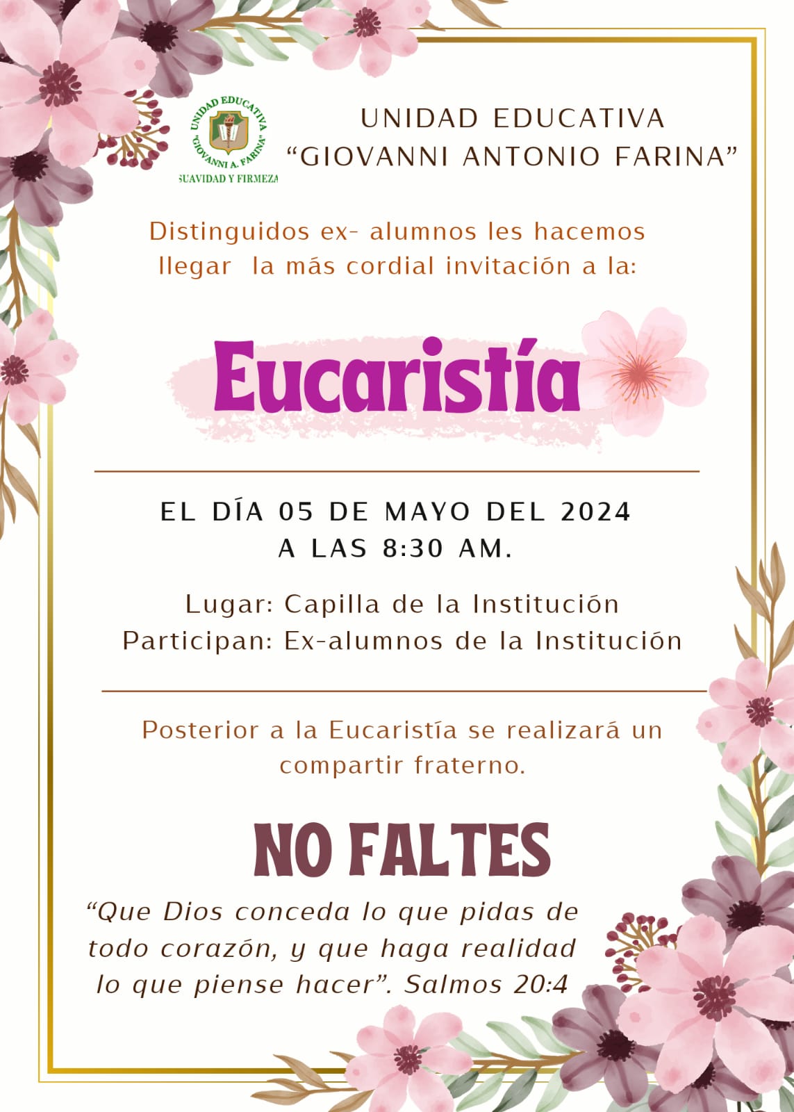 La Unidad Educativa Giovanni Antonio Farina da inicio a las festividades del mes de mayo con una celebración especial en honor a la Virgen María.