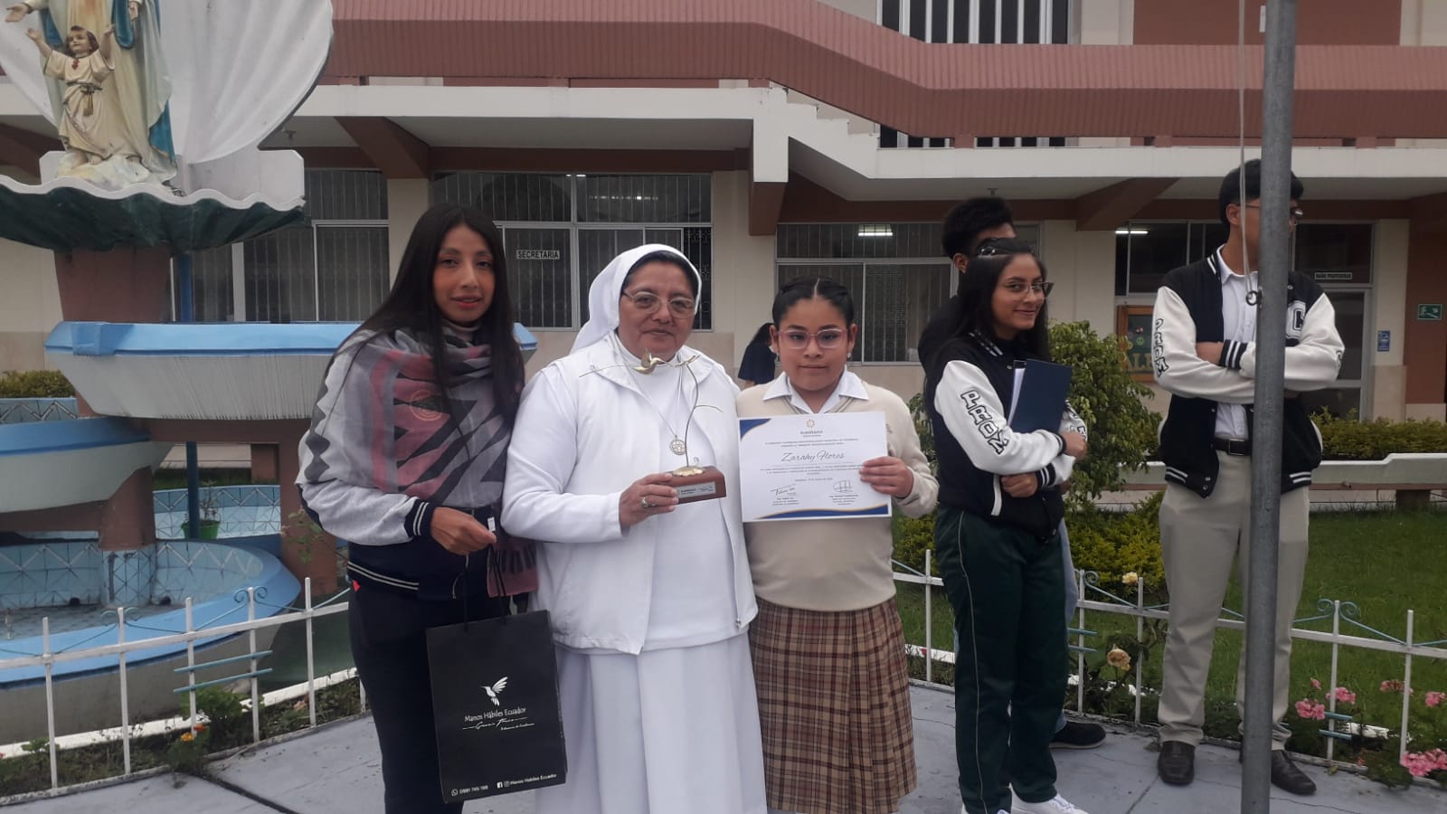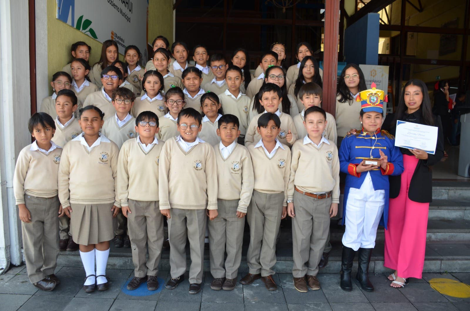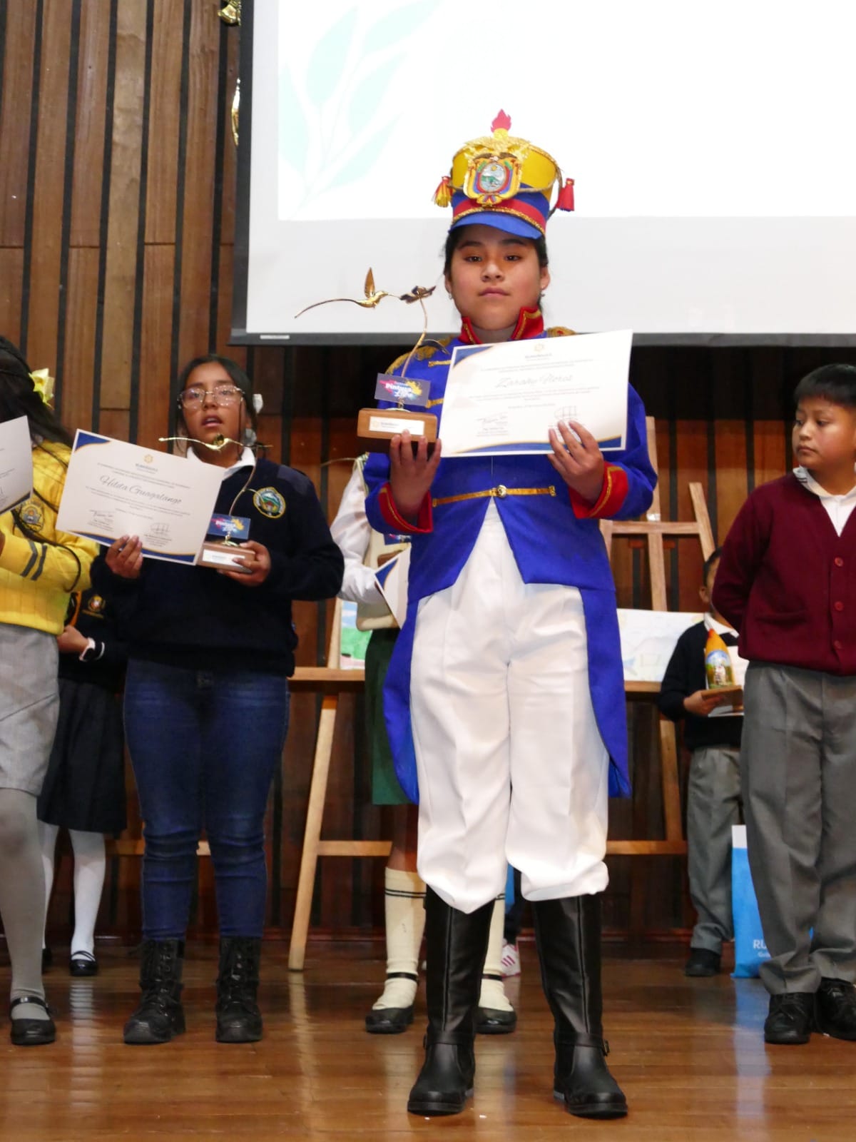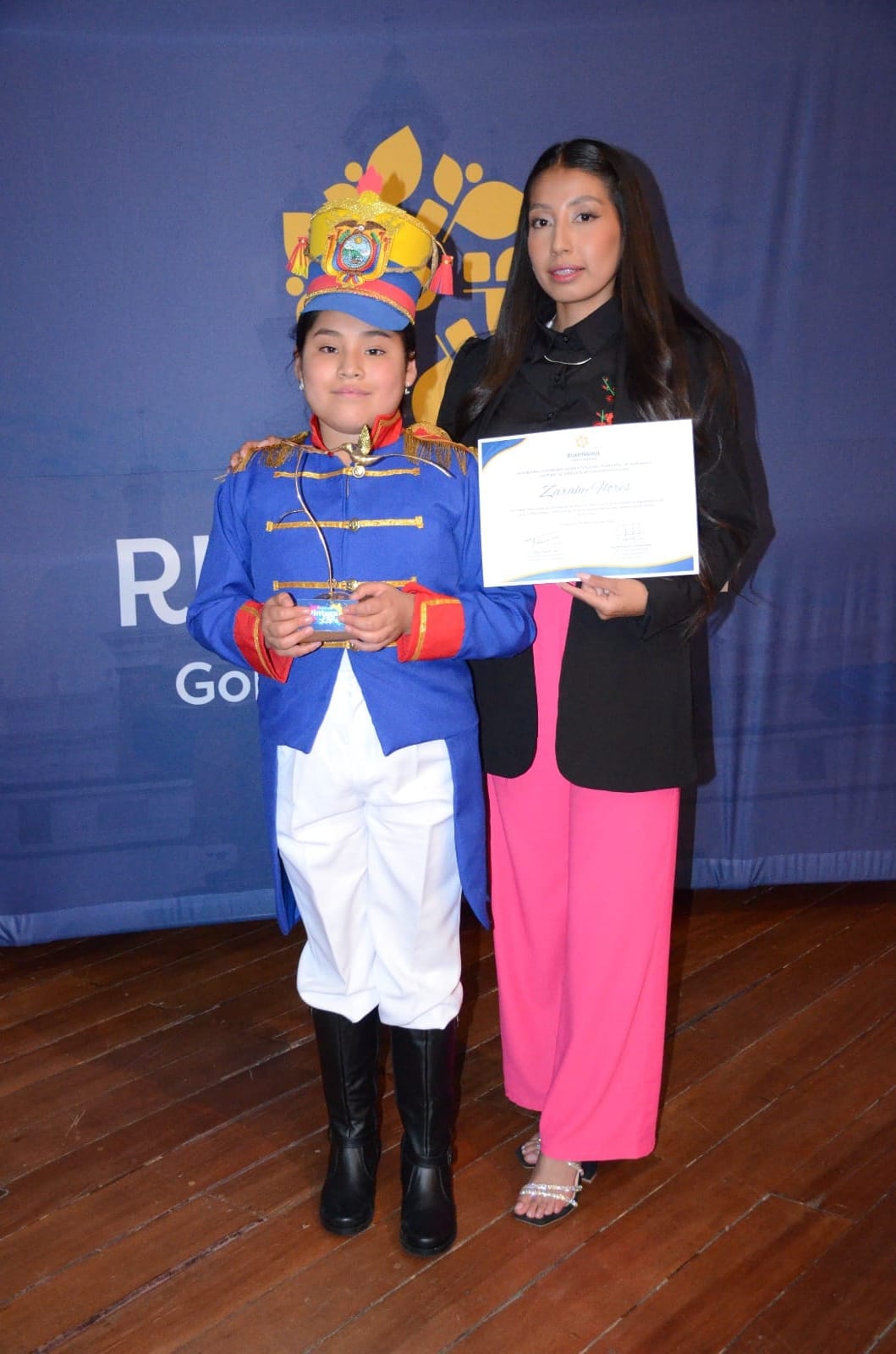 Reconocimiento de participación a la niña Zarahy Valentina Flores Chuquimarca del 6to C, por su intervención en el Festival de Oratoria organizado el 27 de marzo en el Salón de la Ciudad del municipio de Rumiñahui.
